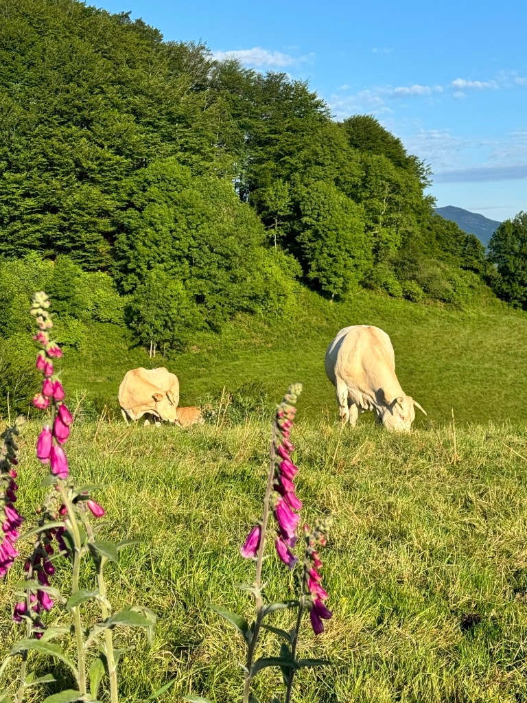 Setting out from Orisson. Cows, sheep and horses were everywhere, and the Foxglove grows wild.