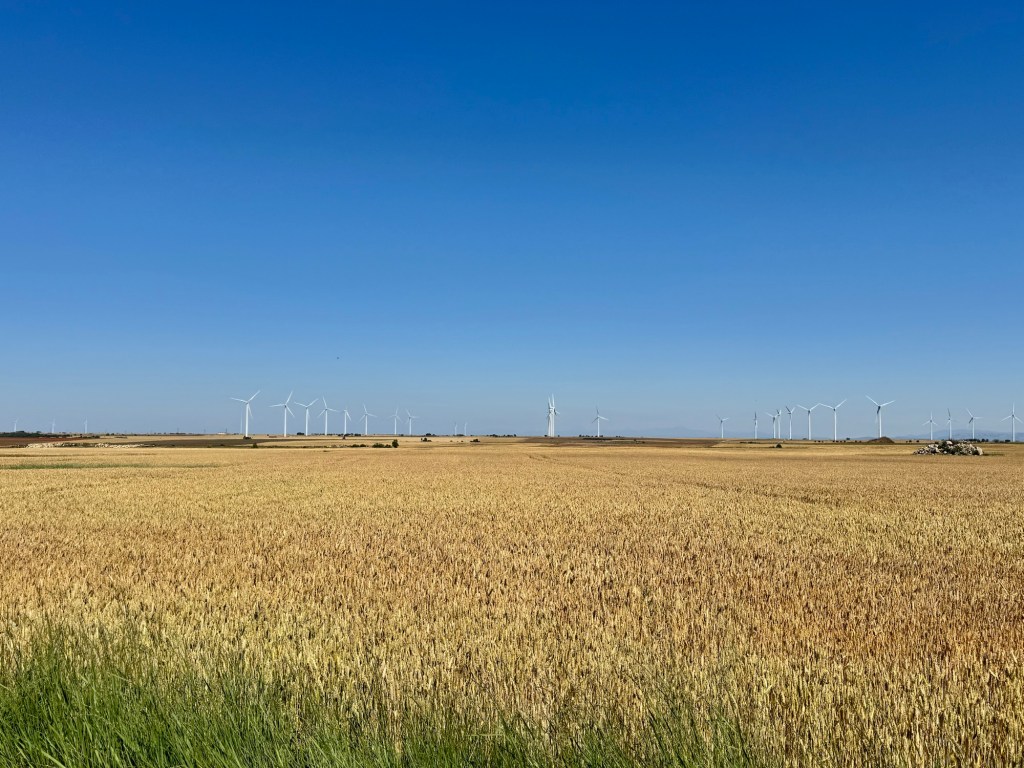 Another day on the Meseta. It looks a lot like parts of the Midwest. Wheat fields as far as the eye can see give ample opportunity to reflect, question, and introspect.