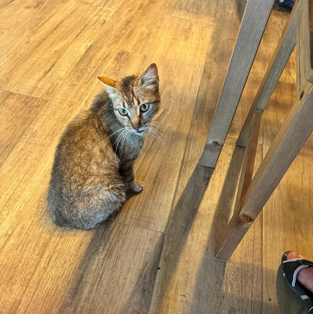This adorable gato kept wandering into the restaurant, meowing loudly for food (the restaurants here are either open-air, or they keep the doors open to keep things cool.) The owner says that this little guy and about half a dozen others show up every night like clockwork to beg for food!