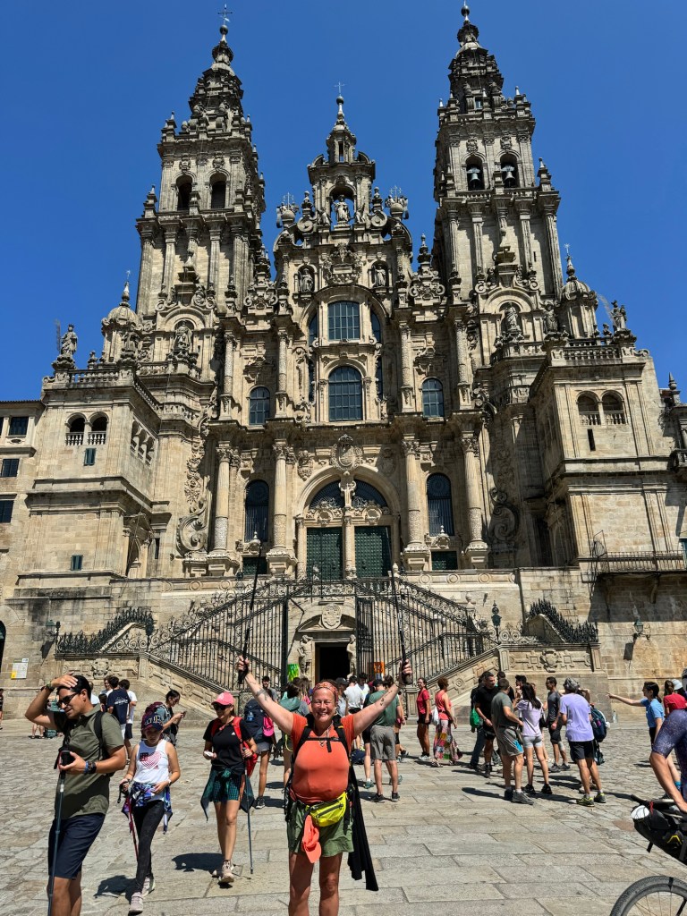 Today was cool and overcast with the sun breaking through later in the dayβ¦perfect for hiking my last 12.5 miles into Santiago.